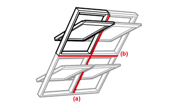 Pour installer des volets roulants, augmentez la distance d'accouplement verticale (b) à 250 mm. Pour installer des moustiquaires, il faut prévoir un kit de raccordement ZOZ 157 et mettre à niveau le raccord horizontal (a) avec la couverture. Pour les points ci-dessus, contactez notre service client.